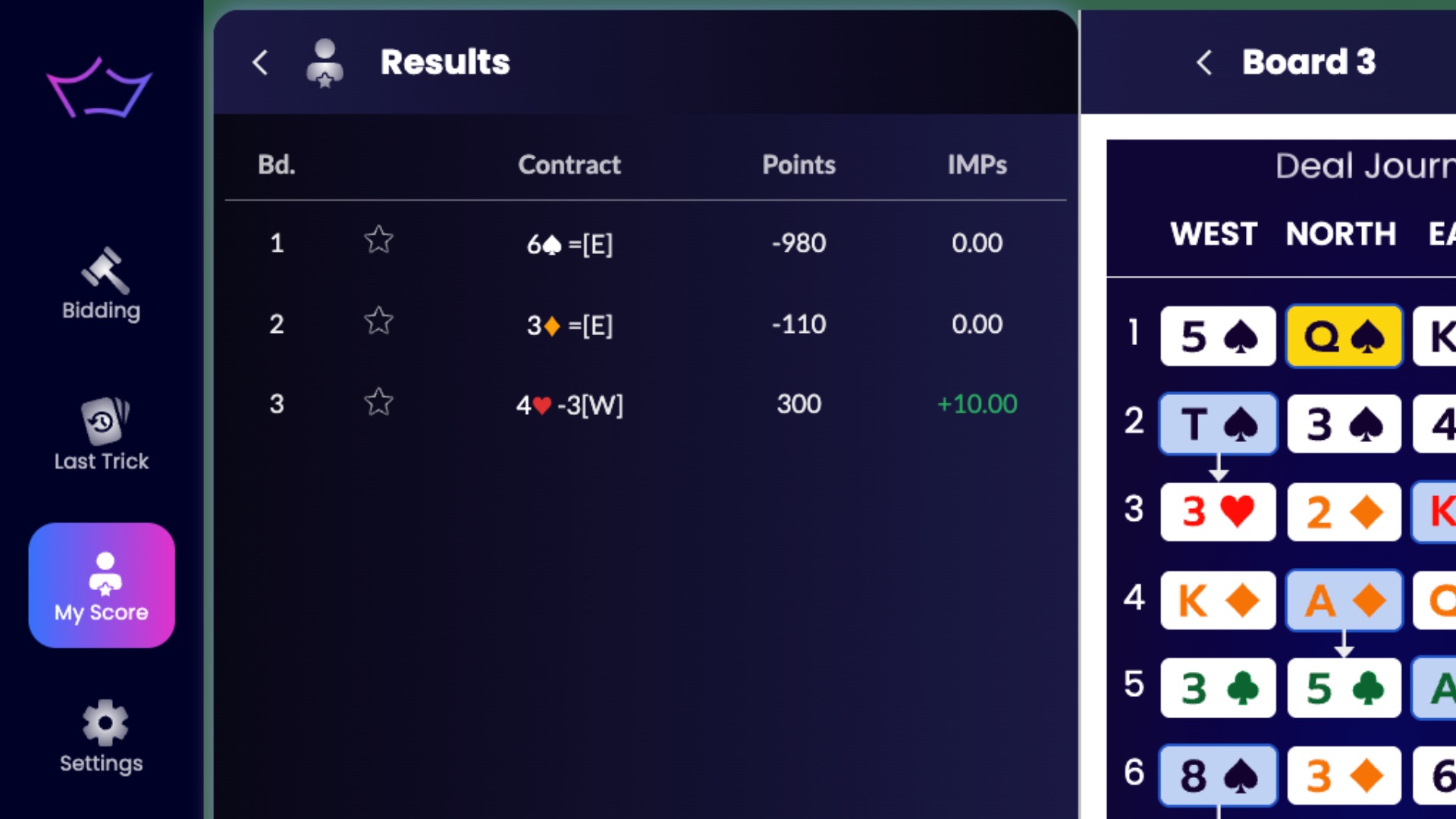While you’re playing on Bridge Champ, you can check results at any time.